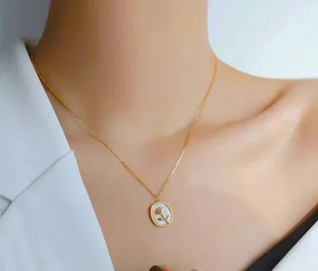 Badam Stone Stainless Steel Necklace for Women – Waterproof & Tarnish-Free