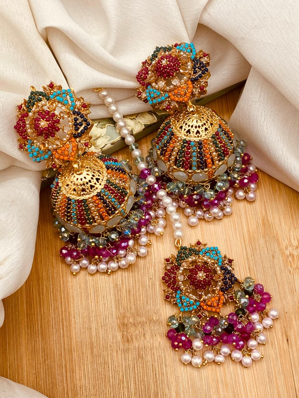 Perfect for women who appreciate elegant ethnic jewelry, this Jhumki Tika Set also makes a thoughtful gift for weddings, Eid, birthdays, and special celebrations.